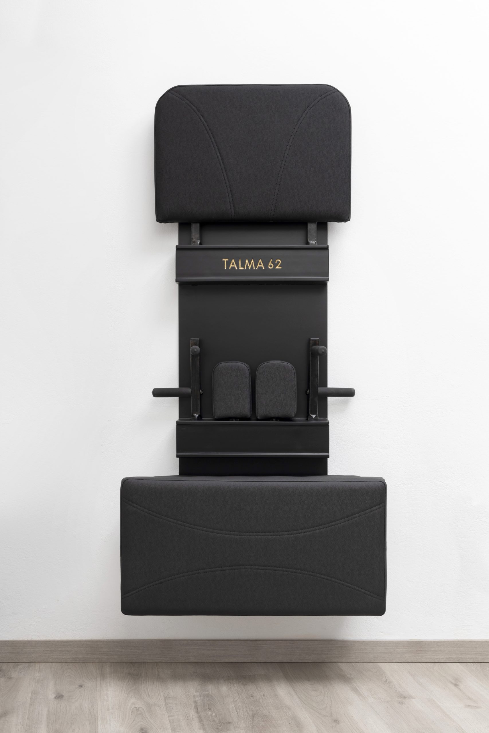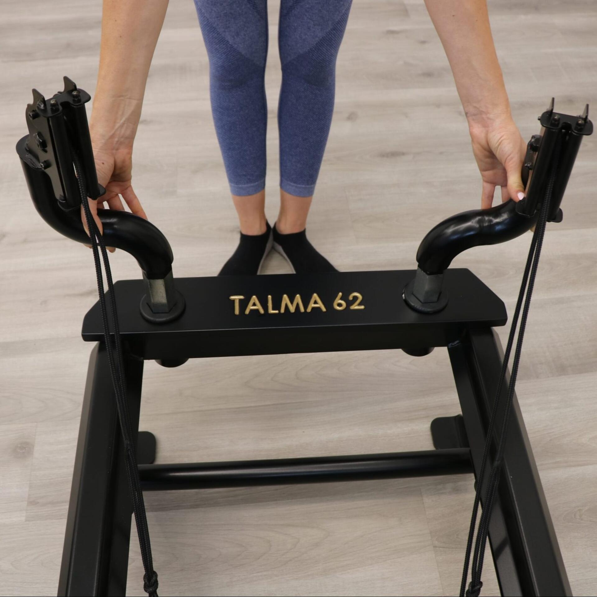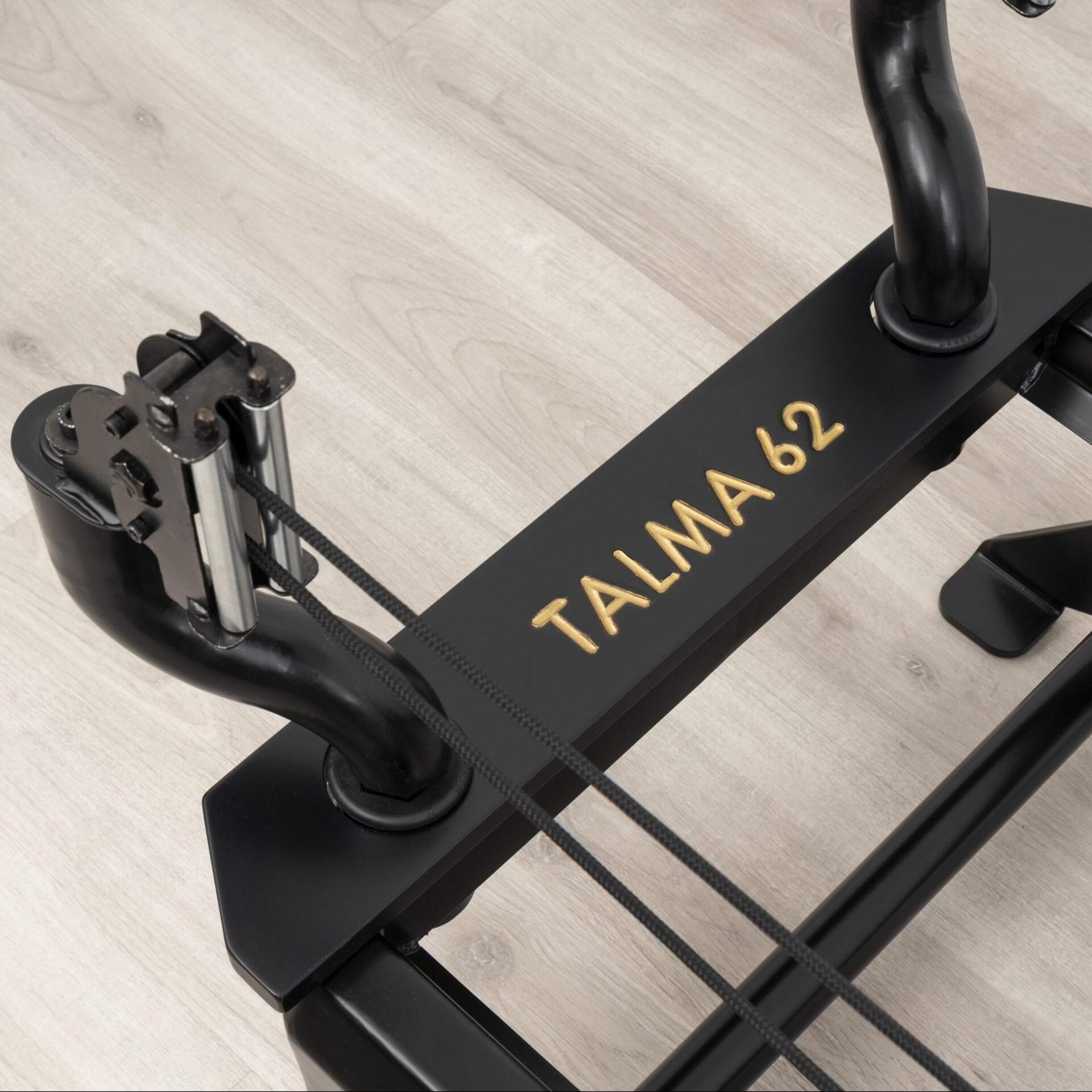 - Το προσεκτικά σχεδιασμένο Footbar αγκαλιάζει το πλαίσιο του Talma 62, αυξάνοντας με αυτό τον τρόπο το μήκος της ωφέλιμης επιφάνειας για όλες τις ασκήσεις.
