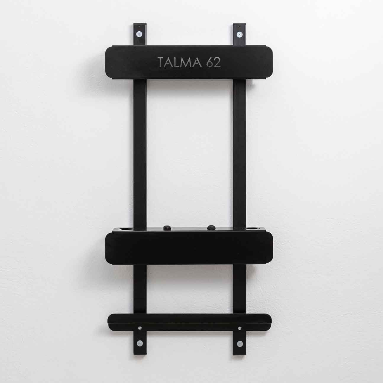 Τοποθετείται στον τοίχο για την αποθήκευση των αξεσουάρ του Pilates Reformer TALMA 62. Κατασκευασμένο από χάλυβα, βαμμένο με τη μέθοδο της ηλεκτροστατικής βαφής και με χαραγμένο λογότυπο TALMA 62. Διατηρήστε τον εξοπλισμό σας σε άριστη κατάσταση και κρατήστε το χώρο καθαρό και ελεύθερο για προπονήσεις!
